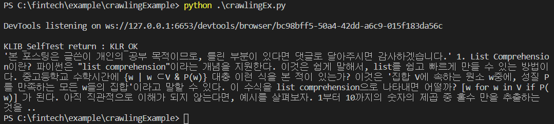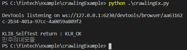 해당 XPath를 복사해서 코드에 넣어준 후, 파일을 실행시키면,