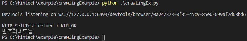 여기까지 하고 실행을 시키면 'Chrome이 자동화된 테스트 소프트웨어에 의해 제어되고 있습니다'라는 문구와 함께