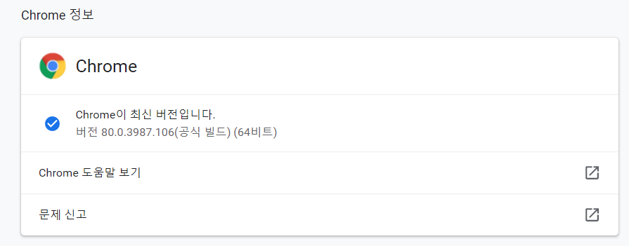 (크롬 버전은 메뉴> 도움말> Chrome 정보 에서 확인이 가능하다.)