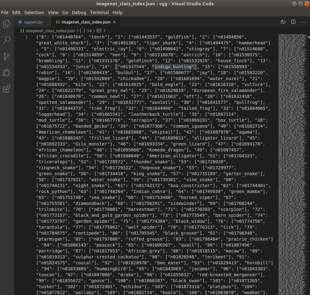 다음은 imagenet_class_index.json 파일의 구조이다.