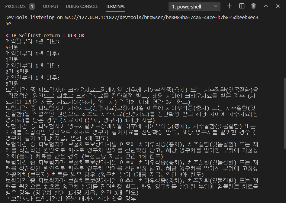 위 코드를 실행시키면 아래와 같이 나에게 맞는 보험 정보가 뜬다.